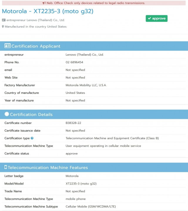 Motorola Moto G32 gets NBTC certified