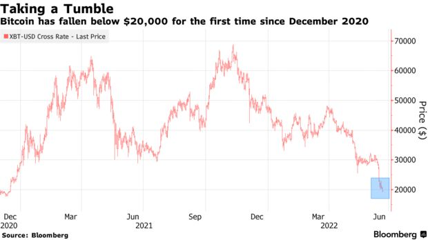 Bitcoin Tumbles Below $20,000 for the First Time Since 2020