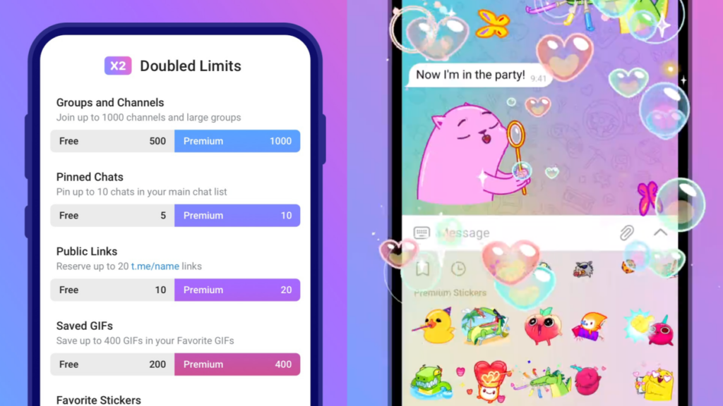 Among these is the ability to upload larger files — up to 4GB in size — and download files faster. There are also doubled limits for everything in the app: follow up to 1,000 channels, create up to 20 chat folders with 200 chats each, pin 10 chats, save up to 10 favorite stickers, and add a fourth account to the app.