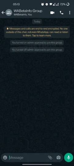 As of now, WhatsApp groups can be joined freely by anyone with an invite link. This latest WhatsApp beta update changes this by adding a new group management tool called “group membership approval.” With this option enabled, people can no longer join the group at will. Instead, group admins have to review and accept or deny each group membership application.
